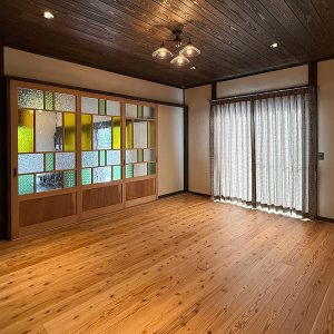 蔵戸のある無垢の木の住まいが、これから古民家の風合いとなり、ハウスランドスタイルの住まいが完成しました。