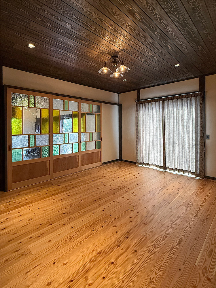 床は浮造りの無垢板で、和のテイストを醸し出しています。