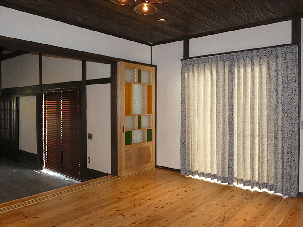 蔵戸のある無垢の木の住まいが、これから古民家の風合いとなり、ハウスランドスタイルの住まいが完成しました。